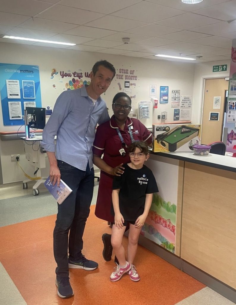 Sorrelle escorted Rob around the ward taking turns to pass the tables to each child.